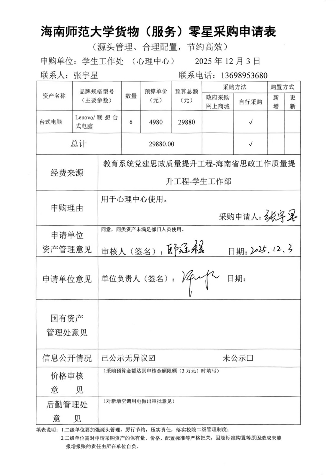 海南师范大学货物(服务)零星采购申请表