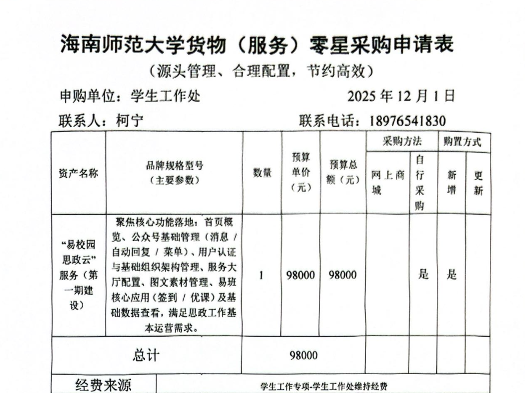 海南师范大学货物(服务)零星采购申请表