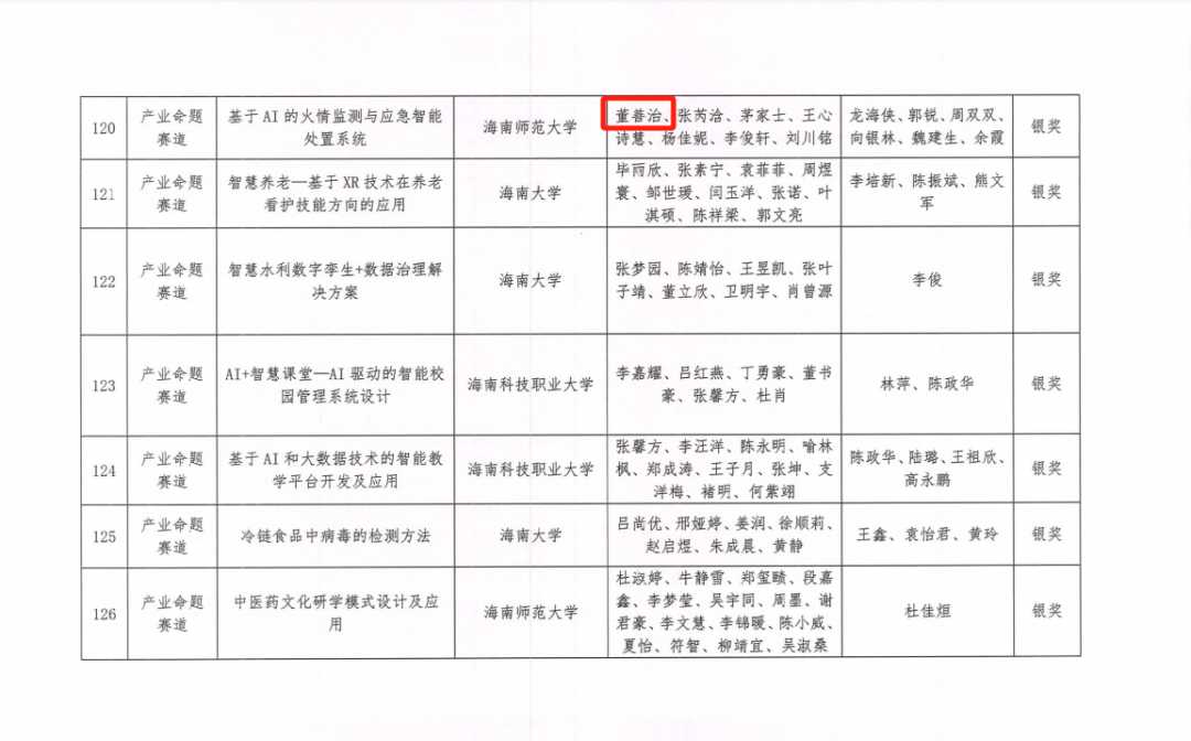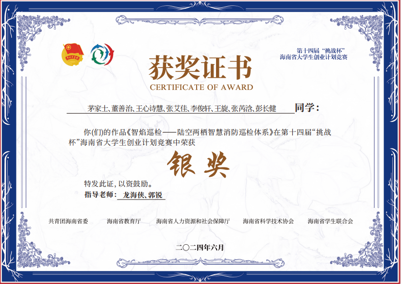 在学术竞赛与科研创新的舞台上,董善治更是光芒闪耀。作为团队核心成员,他凭借出色的组织协调能力,带领团队在各级赛事中屡创佳绩:中国国际大学生创新大赛海南省二等奖、第十四届 “挑战杯” 大学生创业计划竞赛海南省二等奖等 20 余项荣誉见证了他的奋斗历程。此外,他深耕人工智能领域,凭借不懈的努力与钻研,成功获得两项专利,在个人学术简历里增添了亮眼注脚。谈及竞赛收获,他表示:“与优秀的学长学姐交流、结识志同道合的朋友,比获奖更珍贵。”