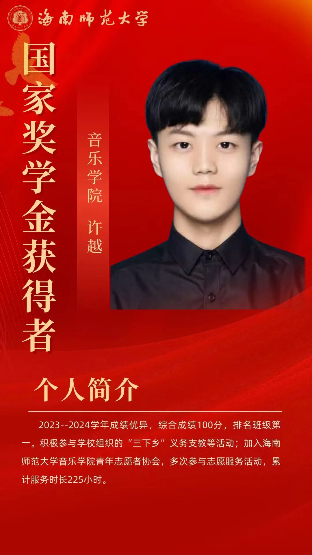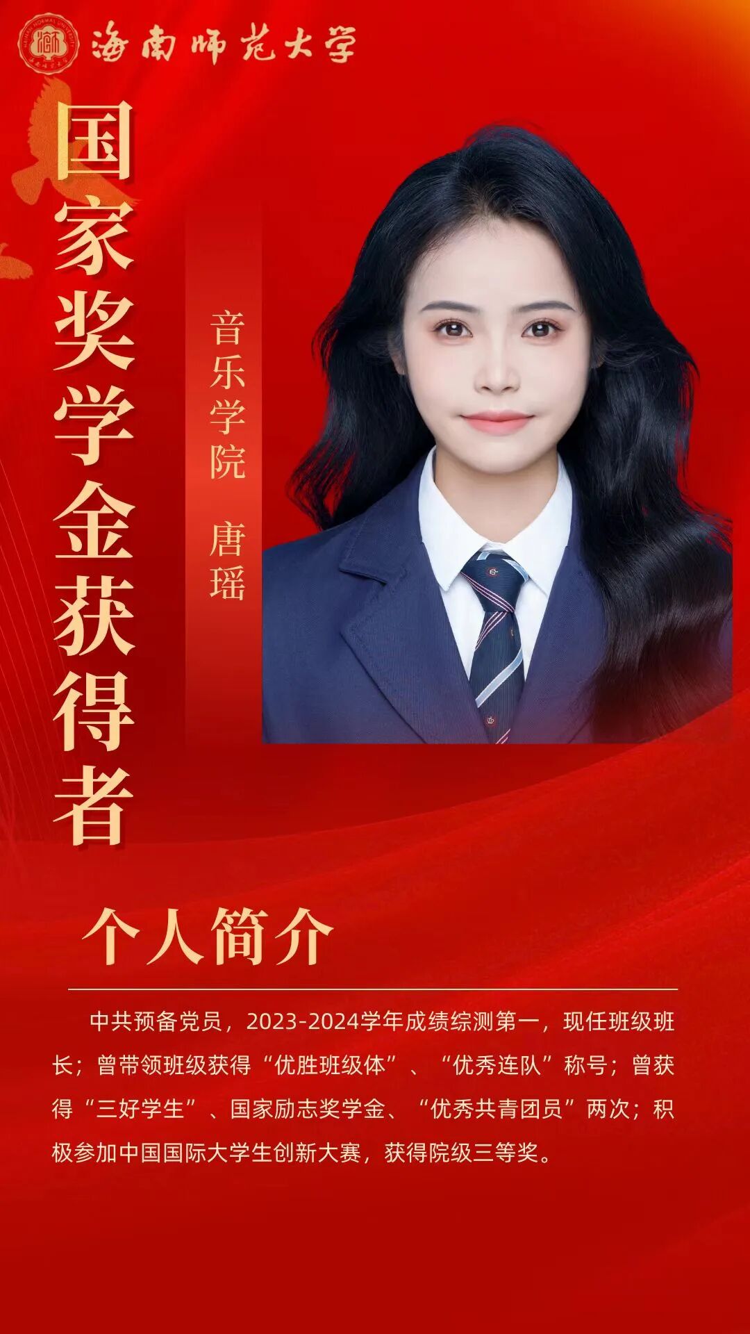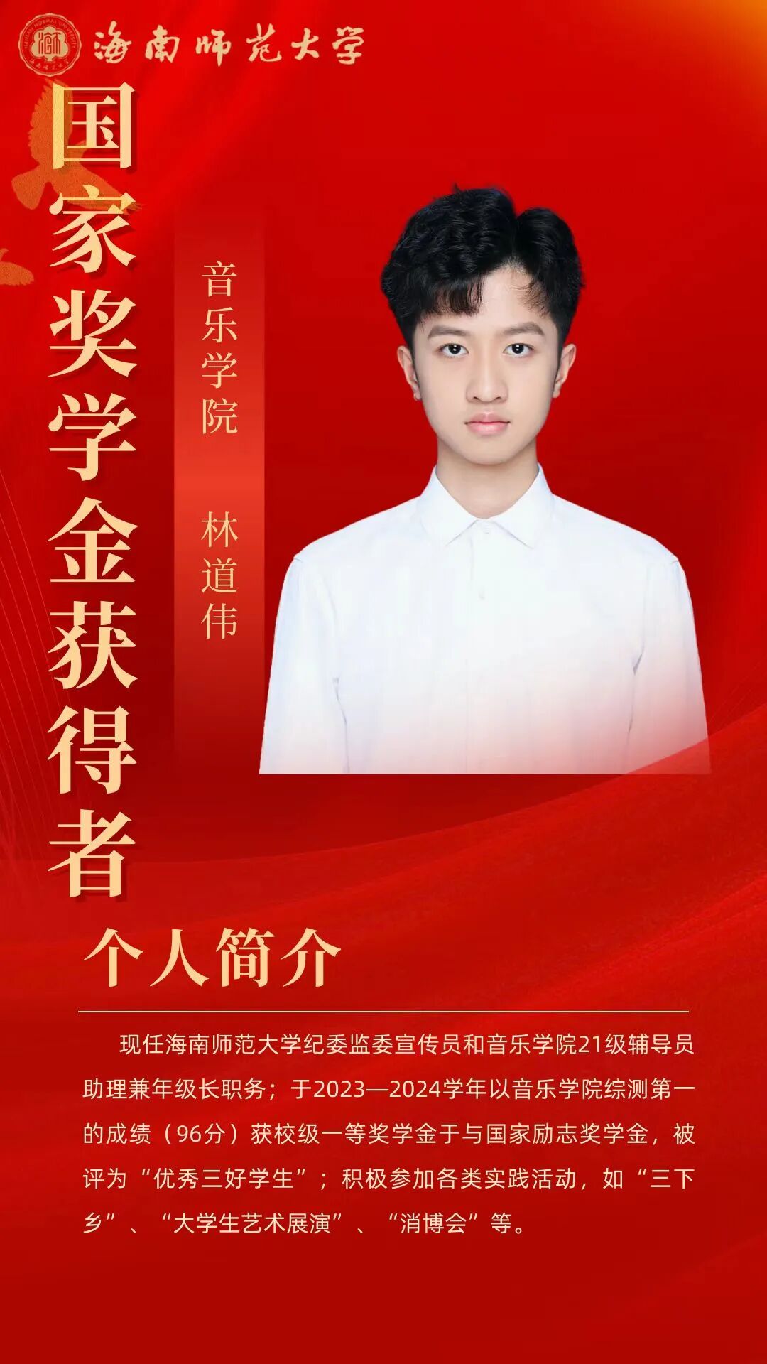 在逐梦的青春征途上,榜样的力量总是熠熠生辉,为我们照亮前行的道路。“海师微学工”微信公众号特别制作《国奖人物》专栏,通过展现2023-2024年度国家奖学金获得者的风貌,激励学子们锚定逐梦航向,扬起青春之帆。