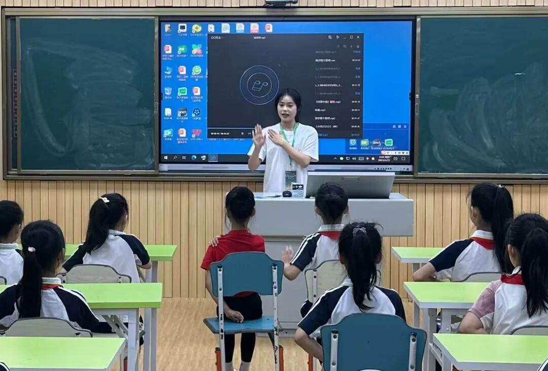 以爱育花,一路生花。她不仅是一名学生,也是一位“老师”。她积极投身于各类实践活动,不断丰富自己的经历,提升专业能力。她参与了2023年海南省教育厅的“椰苗美育行动计划”,负责课桌舞的编写工作。这是一项富有挑战性的任务,需要她将舞蹈的创意与课桌这个特殊的载体相结合,同时还要考虑到学生的接受程度。她反复设计、尝试、调整,让每个动作都适配孩子的接受程度。还把一些舞蹈元素巧妙融入,营造有趣动感的氛围。她站在讲台上,用活力四射的模样抓住孩子们的心。她耐心地拆解动作,细致讲解,遇到领悟较慢的孩子,她轻声鼓励。望着孩子们的灿烂笑脸,她心中满是欣慰,也深知这段实习经历珍贵无比。这个过程不仅锻炼了她的编创能力,为她日后的教学工作积累了宝贵的经验,也坚定了她在舞蹈教育领域发展的决心。