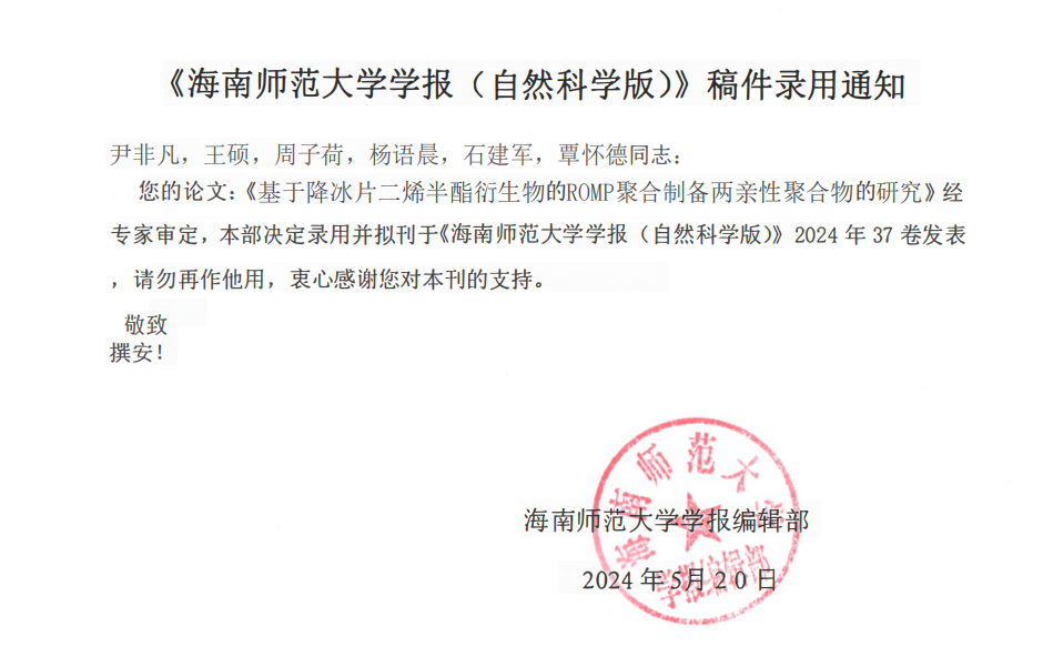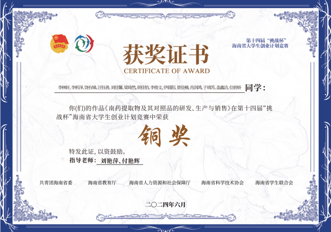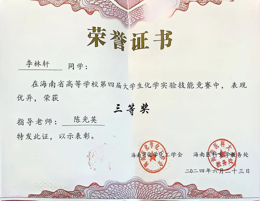 化学与化工学院 个人事迹 书山凿光,学海行舟。入学以来,她毫不懈怠,严于律己,努力学习,每次上课都争取坐前排,平时能够做到课前预习,课堂上课认真,听讲做笔记,积极发言并与老师们互动,课后自觉复习,当有知识在课堂上没有搞懂,她会主动联系老师,把不懂的知识点弄懂,刻苦钻研专业知识。 在学术科研上,目前她作为负责人参与了两项国家级立项的大学生创新创业项目,主要研究海南热带植物胭脂与两面针。应用现代药学学科的技术和手段从天然产物中寻找特异性强、毒副作用小的抗肿瘤新药。论文均涵盖了当前的热点问题,中医药、皮肤癌等。学术科研不仅锻炼了她的科研思维和创新能力,并且为她日后撰写毕业论文打下坚实的基础。 经过两年的学习积累,最终,她获得了大二学年均分:91.73,专业排名1/65,综测分数:100,专业排名:1/65的优异成绩。于24年6月,英语六级考试高分通过,同时均以二作发表1篇SCI,1篇中文核心论文。 李林轩相关获奖证书 知行合一,投身实践。从进入大学后,她积极参加志愿活动,参加过的大型志愿活动累计20多次,时长达275小时,其中有“第四届中国国际消费品博览会志愿活动”“海南师范大学化学与化工学院金色麦田志愿辅导活动”“海南师范大学化学与化工学院灵山小学支教志愿服务活动”“核工业四一六青年志愿者服务队”“2023暑期三下乡”“亚欠村大手拉小手扶贫活动优秀志愿者”等多项志愿活动。 李林轩获消博会优秀志愿者表彰 她不仅专注自身学习,还着眼于国际视野。她积极参与首届高层次国际化人才培养创新班,并于2024年8月参加境外实践训练营泰国培优团。在这次经历当中,她深入泰国曼谷,与国际组织官员面对面交流,体验泰国当地文化,拓宽国际视野。 令她印象最为深刻的是与联合国教科文组织UNESCO的官员交流,他们分享了关于教育平等和文化多样性的深刻见解。这些演讲让她对如何在全球范围内推动教育公平有了更深入的思考。并且通过与国际组织官员的交流,了解到联合国可持续发展目标(SDGs)等全球性议题,以及这些议题在不同国家和地区的具体实施情况。同时在7-Eleven旗舰店的考察中,看到了从理论到实践的跨越,这不仅丰富了她的知识体系,更锻炼了她的实践能力和创新思维。并且了解了企业如何将SDGs理念融入到日常经营中,也让她对企业社会责任有了更深刻的理解。 李林轩参加境外实践训练营泰国培优班 步履生花,心灯长明。她热情乐观,积极向上,勇于挑战和尝试,当面对困难都会想办法解决。并且团结同学,乐于助人,当同学有什么问题,她都会主动帮忙。在紧张的学习与工作生活中努力平衡好关系的同时。她热爱旅游,秉持着“读万卷书,也要走万里路”的信念,用自己的脚步丈量这世界的大好河山。 人生没有白走的路,每一步都算数。没有白费的努力,也没有碰巧的成功。这是她一直坚信的理念。她相信今天的努力,一定能给她带来成长和进步,哪怕一点点,而努力就要做出行动,要拥有敢想敢行动的心态。在接下来的大学时光里,她一定会继续坚守信念,发奋努力,成为一个全面发展的社会主义建设者,成为更优秀的自己,为学校争光。 个人事迹 深耕细作 笃行致远。刚大一的时候她就始终保持着努力上进,有着明确的目标与追求,始终用严格的标准来要求自己。在和家人视频聊天时,她总说:“我不比别人聪明,那我就比别人更努力,努力或许没有收获,但不努力一定没有收获。” 在学习时,她会按照优先顺序来分配自己的任务,有效分配时间和精力。同时,她每周都会有特定的时间留去实验室学习。新学习到的内容当天她会记在自己的备忘录上,并且每隔几天会去巩固一下形成长期记忆。除此之外,她推荐图书馆学习。期末周时,图书馆往往会爆满,她总会早早地起床去图书馆,一呆就是一整天。期末复习时,也会提前三至四周开始准备,先把书上的内容大致过一遍,把记忆不清晰的内容记录下来,着重去复习这一些内容,并且结合习题搭配练习,并且把错题反复看,找出自己错的点进行标注,防止下次再错。老师课上讲的内容听不懂时,她会去b站上搜索网课自主学习,做好笔记,进一步巩固。当发现自己效率很低时,她会尝试调整自己的学习方法去改善这种情况,她说学习方法并不是一成不变的,适合自己并且效率较高的才是最好的,方法也是在不断调整和改进的。 冯嘉怡和宿舍学姐的合照 铭之于心 践之于行。大一上学期,被心中的爱国主义情怀所驱使,她加入了国旗护卫队,在酷暑中,顶着烈日,每一次升旗,制服都会被汗水浸湿,早六的训练,不仅让她养成了早起的习惯,同时也反复打磨了她的意志。现在想起那一段经历,虽然很累,她仍然觉得是无比光荣的。 除此之外,她还积极参加社团活动和各类志愿活动,投身返家乡社会实践之中,助力家乡的发展。在化学与化工学院2024毕业生晚会上,她还与同学一起出演了情景剧。大一上学期,她还体验了人生的第一次无偿献血,她说虽然很痛,但却意义非凡。大一下学期,她还参与到了征兵宣传之中,在征兵宣传点和退伍的学长学姐们一起宣传入伍的政策。在大一时,她已通过了计算机二级考试和英语四级考试,并且考取了普通话二级甲等证书。她抱着什么都想去试试的想法,参加了各种各样的活动,她认为参加这些活动结果并不是最重要的,重要的是这样的经历又