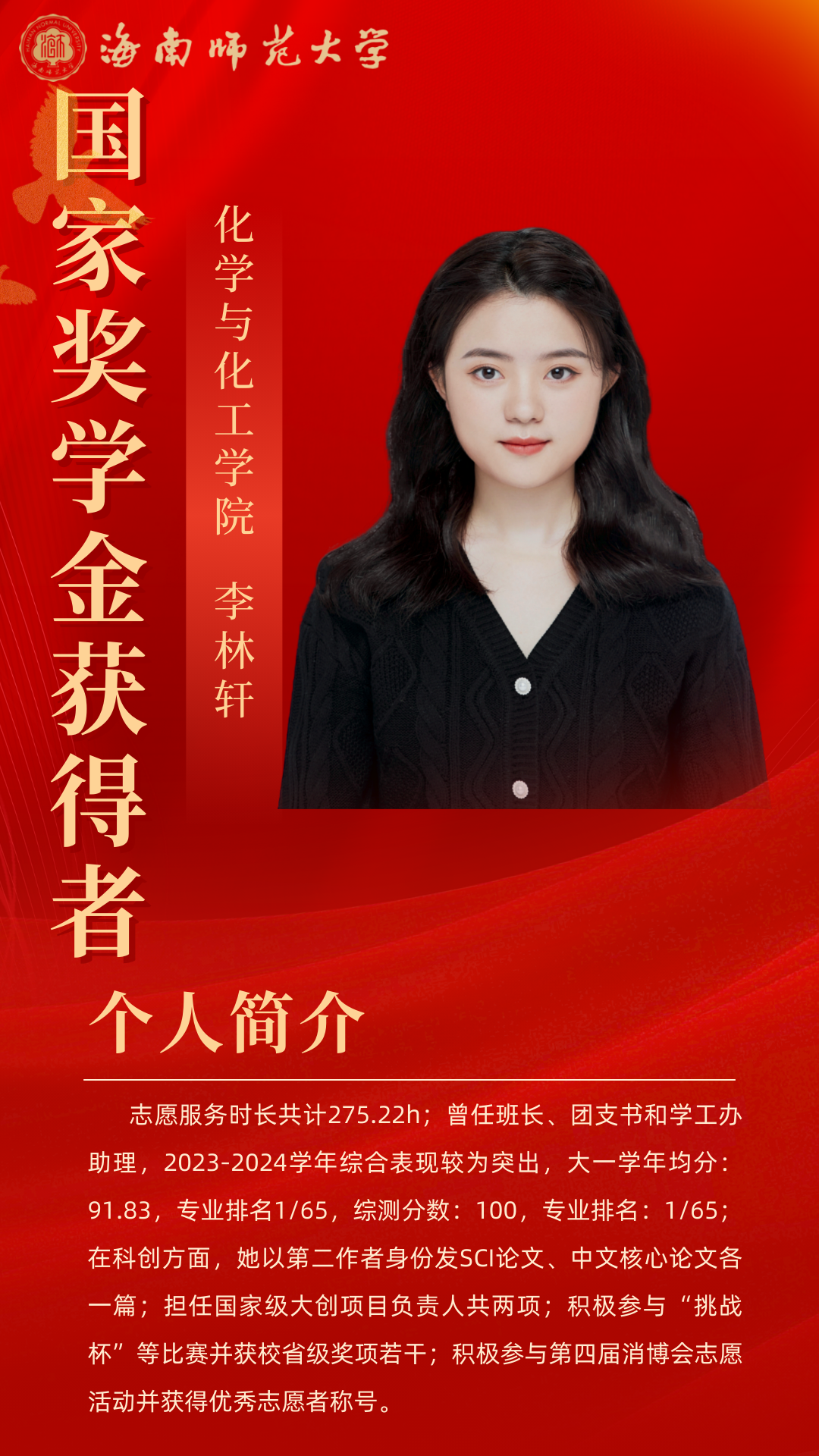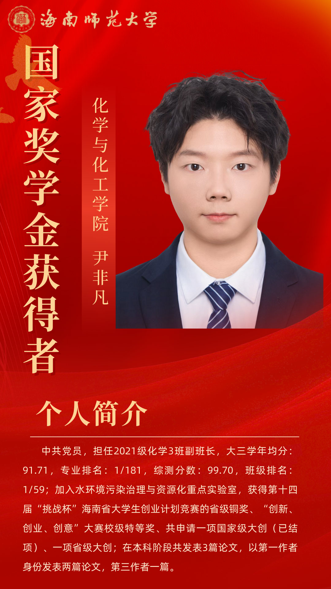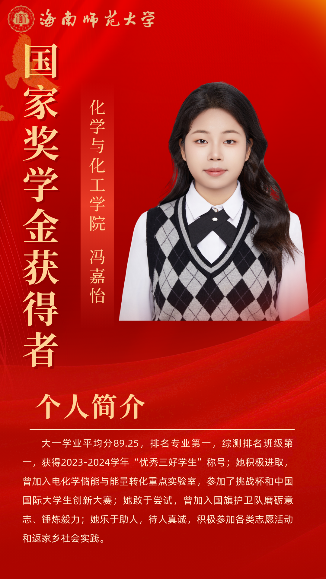 在逐梦的青春征途上,榜样的力量总是熠熠生辉,为我们照亮前行的道路。即日起,“海师微学工”微信公众号特别制作《国奖人物》专栏,通过展现2023-2024年度国家奖学金获得者的风貌,激励学子们锚定逐梦航向,扬起青春之帆。